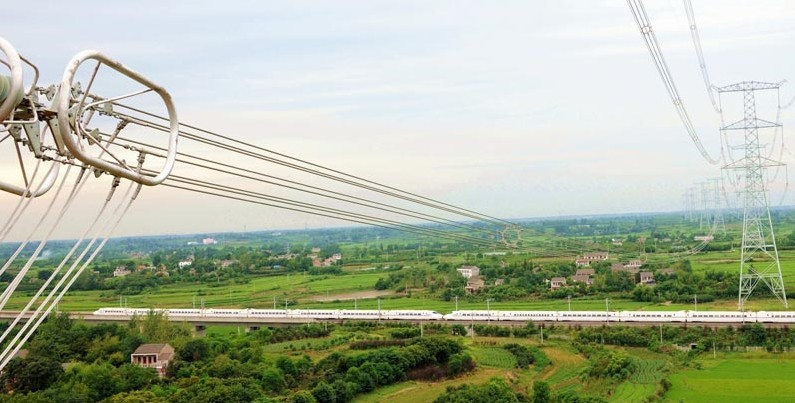 8月4日,在安徽合肥肥西地區(qū),一輛從武漢開往合肥的動車穿越由湖北省送變電工程公司施工的1000千伏皖電東送特高壓淮南至上海一般線路四標(biāo)段C54至C55號塔之間的輸電線。當(dāng)日,全線貫通的1000千伏皖電東送特高壓工程淮南至皖南段輸電線路完成4天的帶電測試,為9月全線投產(chǎn)送電創(chuàng)造條件。