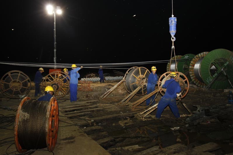 7月14日,1000千伏特高壓淮上線1標段進入最后半個月的沖刺階段,河南送變電工程公司科學組織,高效管理,900多名員工不懼高溫酷暑,堅守施工一線,開展跨越合蚌高鐵架線施工,全力確保實現(xiàn)該工程7月底竣工的目標。