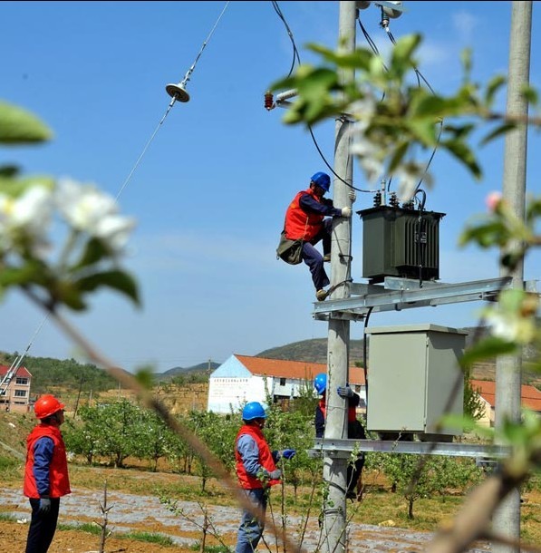 連日來(lái)的干旱,讓素有“大櫻桃之鄉(xiāng)”美稱的亭口鎮(zhèn)果農(nóng)深感焦慮,現(xiàn)在正是大櫻桃著果生長(zhǎng)的關(guān)鍵時(shí)期,國(guó)家電網(wǎng)棲霞市亭口供電所的“電力彩虹服務(wù)”隊(duì)員們,急農(nóng)民所及,專門(mén)開(kāi)辟綠色灌溉報(bào)裝接電通道,為田家水庫(kù)上游架設(shè)7基揚(yáng)水站,安裝80千伏安變壓器7臺(tái),架設(shè)線路3200米,專用水利隔離開(kāi)關(guān)7臺(tái),滿足了周邊12個(gè)村莊,近1000畝大櫻桃和蘋(píng)果灌溉。