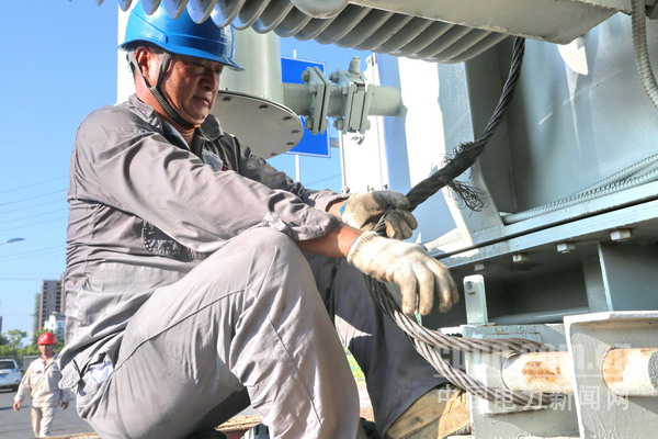 而此時段,該公司主要負(fù)責(zé)人已帶領(lǐng)20余名電力施工人員趕到了施工現(xiàn)場。施工任務(wù)是,將該站原#1主變因故障缺陷需卸載吊裝出站,等待檢修處置。昨夜運(yùn)抵的新#1主變需快速有序地進(jìn)行安裝、調(diào)試。鏖戰(zhàn)高溫、揮汗如雨、守護(hù)清涼的保電突擊戰(zhàn)即將告捷……