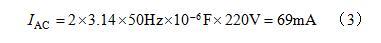 因此市電有效值220V情況下,1mF電容得到的電流大小為