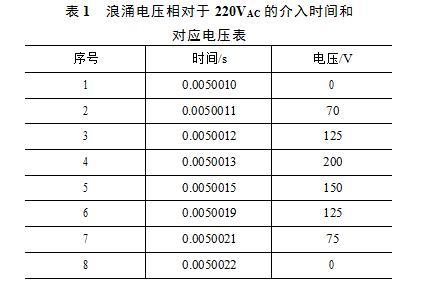 該仿真過程中,采用表1中所列出的數(shù)據(jù)來模擬實際電網(wǎng)中的浪涌波形,該浪涌相對正弦波過零點的延遲時間為0.005001s,持續(xù)時間為1.2ms,峰值電壓為200V。