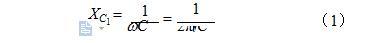 式中,XC1為電容的容抗;f為交流電的頻率;C1為電容器的電容值。