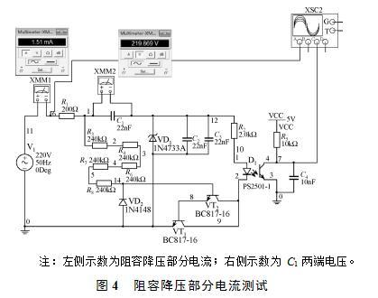 阻容降壓部分電流測試如圖4所示,阻容降壓部分電流為