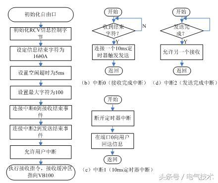 通訊程序的設(shè)計需要遵循一定的約定,如中斷通訊處理程序要短小精悍、要避免在同一端口XMT與RCV指令的同時執(zhí)行等,本文所編寫的通訊流程圖如圖4所示。