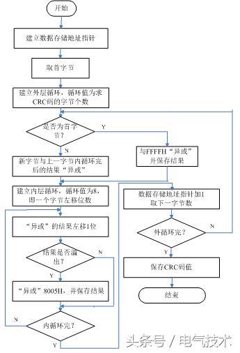 (4)對求CRC校驗碼的字節(jié)序列的首字節(jié),設(shè)定了一個初始化因子,這對程序很重要,在解碼過程中,也要使用相同的初始化因子。圖5所示為實現(xiàn)本算法的PLC軟件流程簡圖。