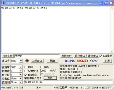 為了檢驗該通訊分站的通訊程序能否正常可靠運行,程序編制好之后,可以利用支持串口調(diào)試的軟件工具(如SSCOM3.2)進行軟件通訊測試,就可確定程序是否可靠。