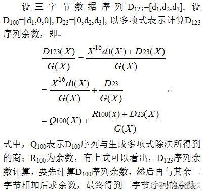 對多字節(jié)數(shù)據(jù)序列的求余,在前三字節(jié)數(shù)據(jù)序列求余的基礎(chǔ)上類推即可。