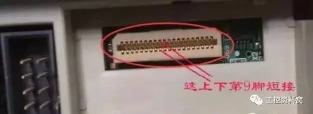 關(guān)掉PLC電源,打開PLC正上方的端蓋,如下圖,可以看到一個(gè)類似長方形端口,面對(duì)端口,從左邊開始數(shù)到端口的第九個(gè)針腳,上下同是第9針腳。然后用很細(xì)的鑷子(或電線)將上下兩個(gè)第9腳短接。