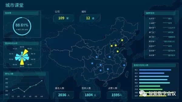 動效的范圍很廣,可以從很多角度解讀,最好的參照就是PPT的動畫特效,比如前文所提的背景動畫、刷新的加載動畫、輪播動畫、圖表的閃爍動畫、地圖的流向動畫等等,都屬于動態(tài)效果的范疇。前文說過,動效的增加能讓大屏看上去是活的,增加觀感體驗。但過分的動效極其容易喧賓奪主,讓觀看者的眼球不知道往哪里聚焦,反而喪失了業(yè)務(wù)展現(xiàn)價值。這個度很難把握,既要平衡酷炫效果,又要突出內(nèi)容。