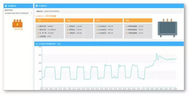 變壓器監(jiān)測顯示變電所內(nèi)所有變壓器的運行狀態(tài)(容量、負(fù)荷率、功率因素、電流、電壓、繞組溫度等),并繪制當(dāng)天的視在功率曲線;