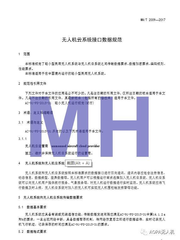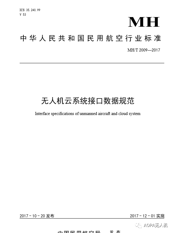 近日,中國民航局發(fā)布無人機云系統(tǒng)接口數(shù)據(jù)規(guī)范,將于121日起實施。