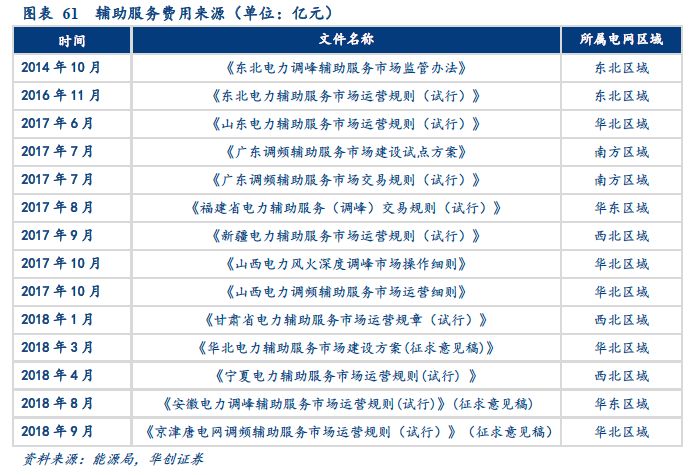 四、市場化輔助服務(wù)全國鋪開,為新能源、電力現(xiàn)貨市場鋪路