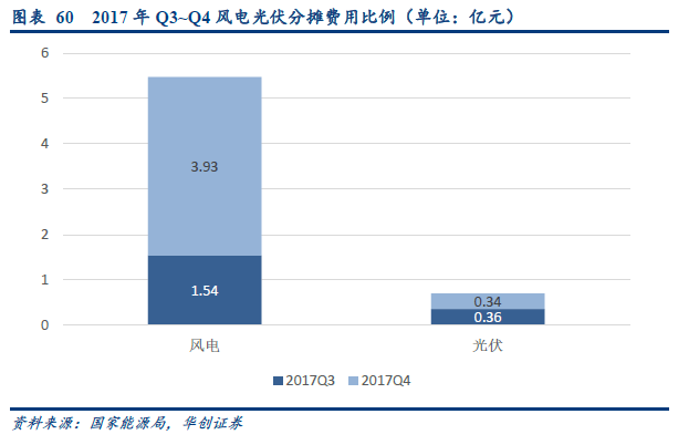 目前,全國范圍的風(fēng)電、光伏已經(jīng)被納入到了輔助服務(wù)補償體系內(nèi)。除去光伏、風(fēng)電自身需承擔(dān)的考核費用外,還需要按照自身的發(fā)電量比例參與分?jǐn)傒o助服務(wù)補償費用。根據(jù)能源局公布的數(shù)據(jù),2017年第三、第四季度,風(fēng)電光伏合計承擔(dān)的分?jǐn)傎M用為1.9億元、4.27億元,分別占對應(yīng)季度發(fā)電機組分?jǐn)傎M用的7.6%、15%。從實際效果上看,實現(xiàn)了新能源發(fā)電“購買”火電、水電等機組調(diào)峰、備用服務(wù)的效果。