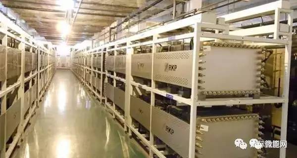 液流電池有多個(gè)體系,其中全釩氧化還原液流電池(vanadiumredoxflowbattery,VRFB)最受關(guān)注。這種電池技術(shù)最早為澳大利亞新南威爾士大學(xué)發(fā)明,后技術(shù)轉(zhuǎn)讓給加拿大的VRB公司。在2010年以后被中國(guó)的普能公司收購(gòu),中國(guó)的普能公司的產(chǎn)品在國(guó)內(nèi)外一些試點(diǎn)工程項(xiàng)目中獲得了應(yīng)用。電池的功率和能量是不相關(guān)的,儲(chǔ)存的能量取決于儲(chǔ)存罐的大小,因而可以儲(chǔ)存長(zhǎng)達(dá)數(shù)小時(shí)至數(shù)天的能量,容量也可達(dá)MW級(jí),適合于應(yīng)用在電力系統(tǒng)中。