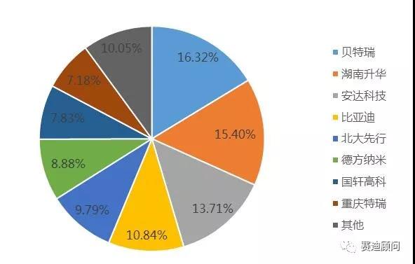 2017年中國鋰電正極材料市場格局(按銷量:萬噸)