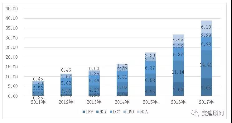 2017年動力電池出貨量突破60GWh,三元正極成主流方向