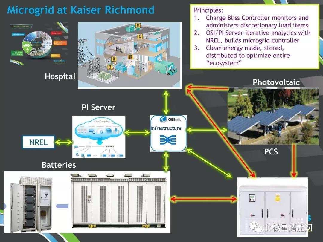 據(jù)研究分析,微電網(wǎng)在學(xué)校醫(yī)院等場所應(yīng)用市場最具前景,美國加州凱撒醫(yī)院的案例包含了光伏、儲(chǔ)能、電動(dòng)汽車等多項(xiàng)新能源技術(shù),具有代表意義。