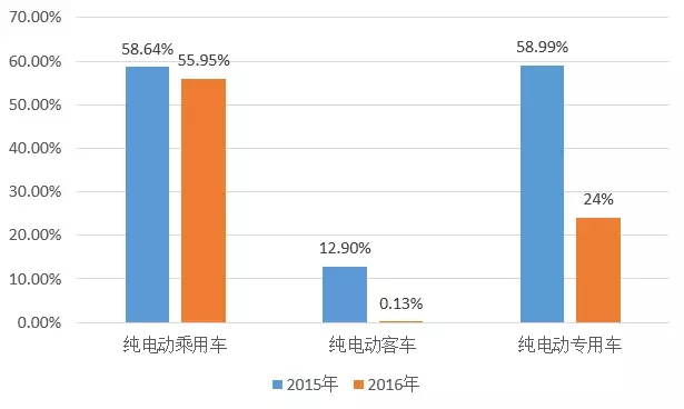 實(shí)際上,三元材料電池的配套量占比降低,與2016年初政府暫停三元鋰電池客車列入新能源汽車推廣目錄有著直接關(guān)系。數(shù)據(jù)顯示,2015年三元材料電池在純電動(dòng)客車上的配套量占比達(dá)12.9%,而到2016年時(shí),僅有0.13%;配套量從2015年的1.18GWh銳減到僅有0.02GWh。