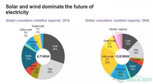 根據(jù)預(yù)測(cè),2040年太陽(yáng)能光伏將成為主導(dǎo)能源之一,占全球發(fā)電總裝機(jī)的32%;風(fēng)電14%、水電12%、煤電14%、天然氣13%、核電3%。