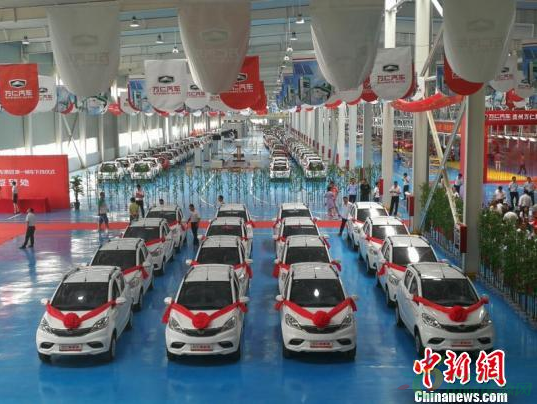 在萬仁新能源第一輛汽車下線儀式現場,記者看到生產車間的生產線上停靠著等待調試的車輛。在生產車間的??繀^(qū)域一輛輛披紅的車整齊有序的排列,等待裝運發(fā)貨。目前,萬仁新能源有21輛車已經調試完畢,下線儀式結束后,將裝上貨運車運送到貴陽、凱里等地市場進行銷售。
