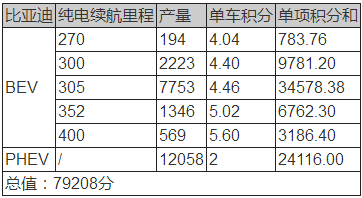 表2 2017年上半年比亞迪新能源乘用車積分試算