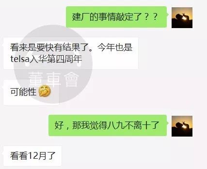 為更好地服務(wù)中國(guó)市場(chǎng),特斯拉正與上海市政府探討在該地區(qū)建設(shè)工廠的可能性。正如之前所溝通,到今年年底,我們的國(guó)產(chǎn)化計(jì)劃將會(huì)更加清晰。特斯拉一直致力于深耕中國(guó)市場(chǎng)。同時(shí),為了更好地服務(wù)全球各地市場(chǎng),我們也不斷在全球范圍內(nèi)評(píng)估潛在的制造工廠的選址。盡管我們預(yù)計(jì)大部分生產(chǎn)仍將在美國(guó)完成,但我們需要設(shè)立海外工廠以確保更多的當(dāng)?shù)叵M(fèi)者能負(fù)擔(dān)得起我們的產(chǎn)品。如后續(xù)的聊天記錄所示,特斯拉內(nèi)部也應(yīng)該是基本確認(rèn)了這個(gè)消息,只是等待在合適的機(jī)會(huì)予以宣布,而這個(gè)時(shí)間可能在12月份。