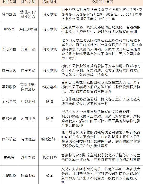 隨著新能源汽車產(chǎn)業(yè)發(fā)展的不斷推進(jìn)和市場(chǎng)成熟度不斷提升,優(yōu)質(zhì)鋰電標(biāo)越來(lái)越少,導(dǎo)致企業(yè)估值較前兩年呈現(xiàn)翻倍或數(shù)倍增長(zhǎng),雙方在收購(gòu)價(jià)格上出現(xiàn)較大分歧,主要是標(biāo)的企業(yè)認(rèn)為收購(gòu)價(jià)格過(guò)低,最后分道揚(yáng)鑣。