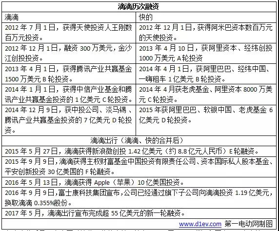 在滴滴背后是眾多中國(guó)科技業(yè)巨頭的支持,其中包括阿里巴巴、騰訊和百度,而滴滴甚至還吸引到了大洋彼岸的蘋果公司對(duì)其進(jìn)行投資。據(jù)不完全統(tǒng)計(jì),滴滴自成立五年來已獲得15次融資,估值或已突破500億美元(3500億人民幣)。