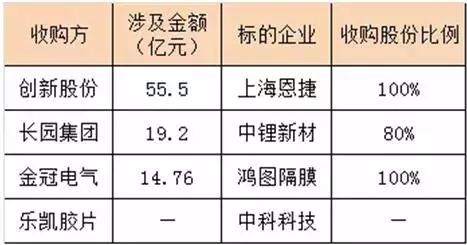 ▲2017年隔膜領(lǐng)域主要收購案例