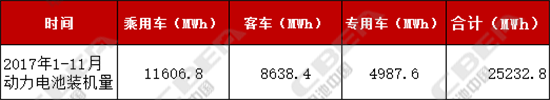 根據(jù)分會(huì)研究部最新統(tǒng)計(jì)數(shù)據(jù),2017年1-11月,我國(guó)新能源汽車(chē)動(dòng)力電池裝機(jī)量共25232.8AWh(25.23GWh),從數(shù)量上可以看出,到11月份才消化完9月份及之前生產(chǎn)的動(dòng)力電池。