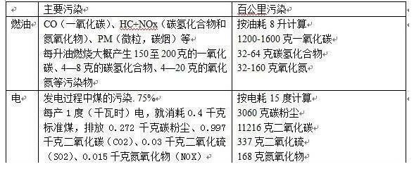 不管有人拿出多漂亮的電力減排指標,然而在主要靠煤炭作為主要燃料的火力發(fā)電的中國,能源排放情況卻是,用電直接、間接引起的百公里污染物比燃油大得多(如下圖)。