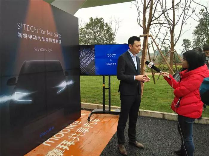 圖為:SITECH新特電動汽車工業(yè)有限公司CEO先越先生在上線儀式現(xiàn)場接受采訪