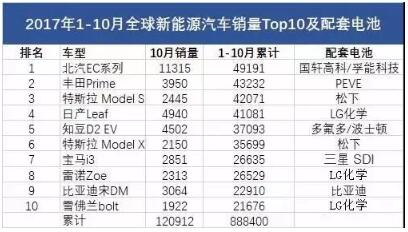 下面盤點(diǎn)一下1-10月全球銷量榜前十車型配套的動力電池,來看看這些幕后的“功臣”。