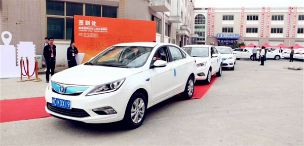 長安逸動EV300整齊地陳列在儀式現(xiàn)場