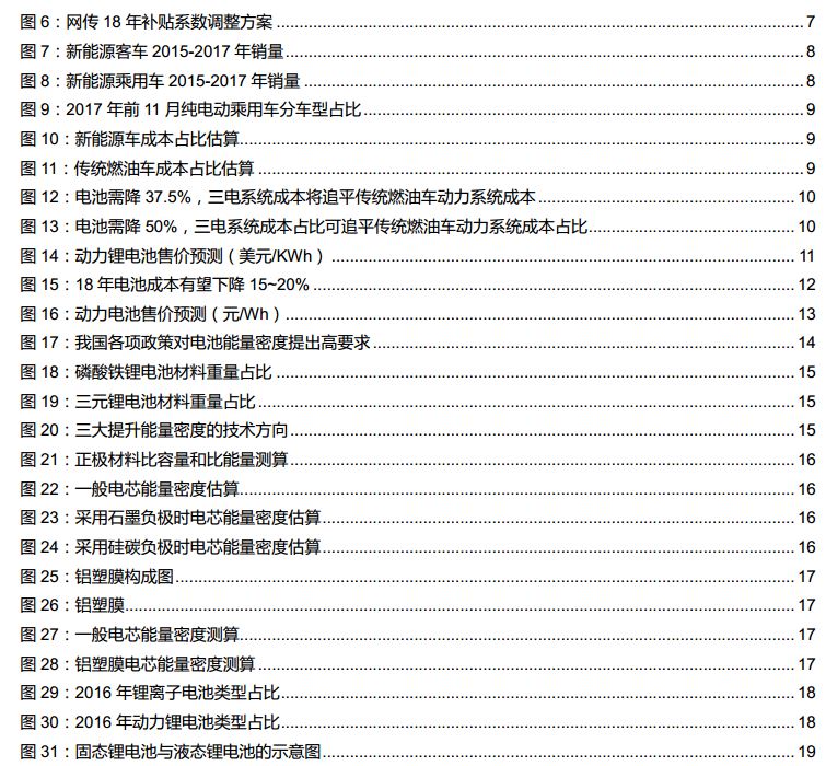 2017 年以來我國新能車的相應(yīng)政策持續(xù)調(diào)整,年初的極度悲觀到三季度得極度樂觀,反應(yīng)了產(chǎn)業(yè)仍處于導(dǎo)入期的不成熟心態(tài)??梢悦鞔_的是,我國仍在有意扶持和培育產(chǎn)業(yè)發(fā)展,并且新能車 15-17 年的產(chǎn)銷量也如期增長。具體來看,我們認(rèn)為新能源車補(bǔ)貼、推薦目錄、雙積分三大政策,將對(duì)行業(yè)未來三年的發(fā)展產(chǎn)生重要影響。三大政策扶強(qiáng)扶優(yōu),并都指向了高能量密度電池技術(shù)方向。中短期三元鋰對(duì)磷酸鐵鋰的替代、鋁塑膜對(duì)鋁殼和鋼殼的替代或?qū)⒊掷m(xù),而中長期的固態(tài)鋰電池有望成為未來的主流。