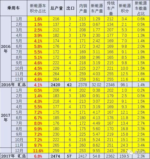 原標(biāo)題:17年1-12月新能源汽車積分比例達(dá)6.8%
