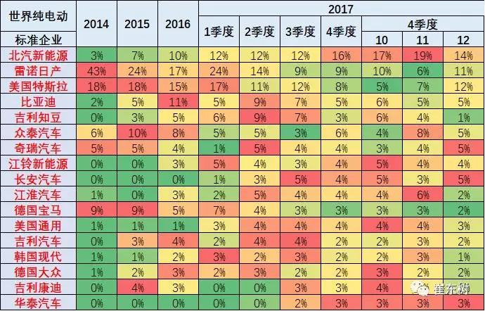 從世界新能源的企業(yè)集團表現(xiàn)看,北汽集團是第一,比亞迪第二,吉利第三,這也是中國新能源的超強世界地位。日產、寶馬、通用的表現(xiàn)也是很好。