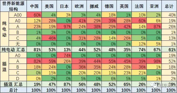 中國的插混與其他國家相一致,而日本的A0級比較多,這是日產的NOTE增程電動車的較好表現(xiàn)。
