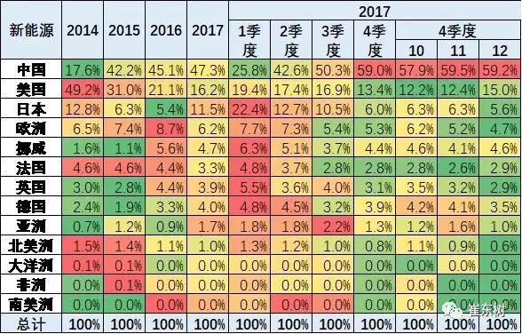 目前看,美國份額持續(xù)回落,日本份額前期下滑后2017年大幅回升,而挪威和德國的表現(xiàn)也是很強的。
