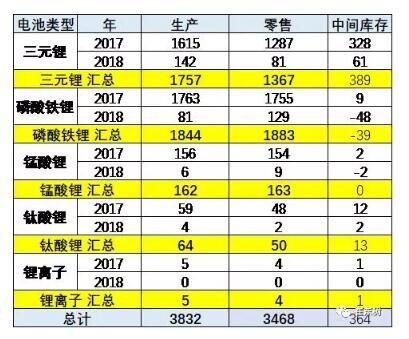專用車的三鋰電池,2017年產(chǎn)大于銷較多,2018年裝車和零售表現(xiàn)較好。