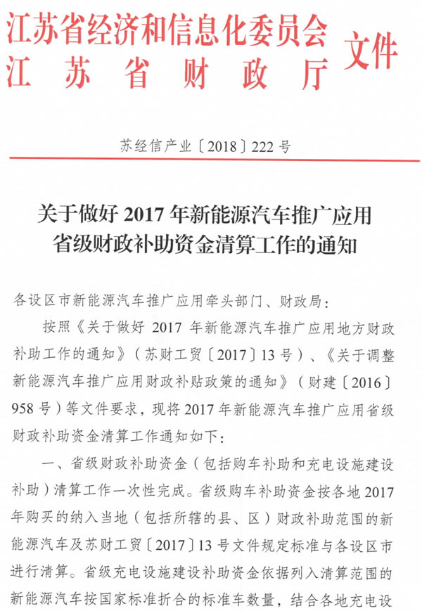 現(xiàn)將省經(jīng)信委、省財(cái)政廳《關(guān)于做好2017年新能源汽車(chē)推廣應(yīng)用省級(jí)財(cái)政補(bǔ)助資金清算工作的通知》(蘇經(jīng)信產(chǎn)業(yè)〔2018〕222號(hào))(以下簡(jiǎn)稱“省通知”)轉(zhuǎn)發(fā)給你們,請(qǐng)迅速組織開(kāi)展。并就我市做好此項(xiàng)工作提出要求如下: