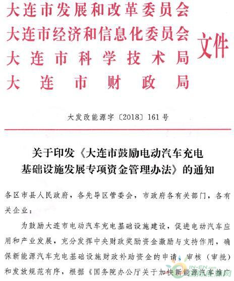 近日,大連市發(fā)布《大連市鼓勵電動汽車充電基礎(chǔ)設(shè)施發(fā)展專項資金管理辦法》,大連對專用、公用充電基礎(chǔ)設(shè)施建設(shè),給予充電設(shè)施投資30%的財政資金補貼。直流充電設(shè)施(含交直流一體機)補貼600元/千瓦 ,交流充電設(shè)施補貼300元/千瓦。
