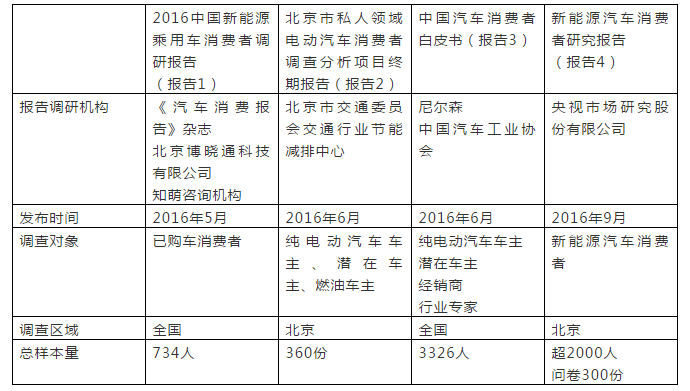 為了避免偏頗,我們也引用了四家其他機構(gòu)調(diào)研的部分結(jié)果,供大家參考(下稱參考報告)。需注意的是,參考報告都是以“新能源乘用車”為主體做調(diào)研,但是報告2和報告4都在北京調(diào)研,報告1還區(qū)分了純電動和插電式,因此,總體結(jié)論偏向純電動乘用車消費者的特征。