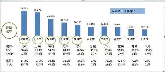 2017年前11月新能源乘用車銷量前十城市