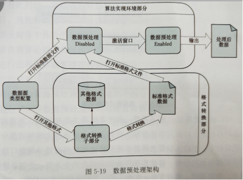 數(shù)據(jù)預(yù)處理系統(tǒng)如圖5-19所示,從整體上分為數(shù)據(jù)格式轉(zhuǎn)換子系統(tǒng)、預(yù)處理算法實(shí)現(xiàn)環(huán)境子系統(tǒng)和數(shù)據(jù)管理子系統(tǒng)三個(gè)部分。從整體上看,系統(tǒng)的輸入是一個(gè)數(shù)據(jù)文件,或者是一個(gè)數(shù)據(jù)庫(kù)表,輸出的結(jié)果是對(duì)其進(jìn)行處理后的數(shù)據(jù)文件或者數(shù)據(jù)庫(kù)表處理包括應(yīng)用數(shù)據(jù)預(yù)處理算法對(duì)數(shù)據(jù)進(jìn)行預(yù)處理,或者是格式轉(zhuǎn)換。因此,系統(tǒng)被設(shè)計(jì)成為數(shù)據(jù)文件驅(qū)動(dòng)型的,任何操作都必須建立在有可用的數(shù)據(jù)文件的前提下。