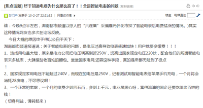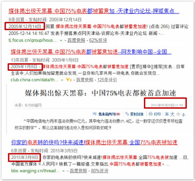 這來源于一篇網(wǎng)上流傳很久的“新聞”:“媒體揭出驚天黑幕:中國75%電表都被蓄意加速”。