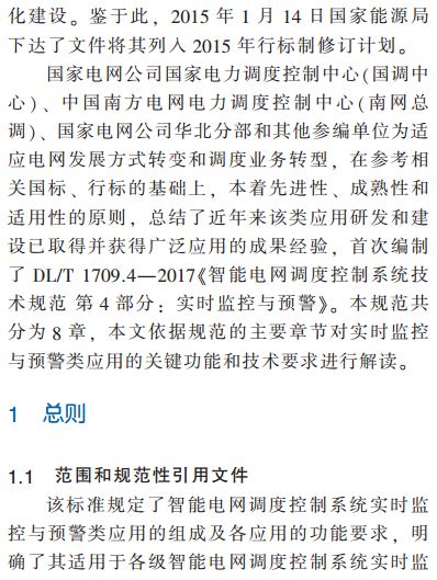 本文在對中國智能電網(wǎng)調(diào)度控制系統(tǒng)實時監(jiān)控與預(yù)警類應(yīng)用功能研究的基礎(chǔ)上,對今年來相關(guān)應(yīng)用建設(shè)和實用化成果進行提煉總結(jié),形成電力行業(yè)標(biāo)準(zhǔn)DL T 1709 4-2017《智能電網(wǎng)調(diào)度控制系統(tǒng)技術(shù)規(guī)范第4部分:實時監(jiān)控