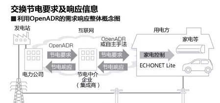 日本2014年底實(shí)施自動(dòng)需求響應(yīng)實(shí)證試驗(yàn)。使用ADR國(guó)際標(biāo)準(zhǔn)規(guī)格OpenADR2.0,在電力供應(yīng)緊張時(shí),自動(dòng)向用戶發(fā)出節(jié)電要求信號(hào)(以下簡(jiǎn)稱DR信號(hào)),家庭、企業(yè)等用電方自動(dòng)接收DR信號(hào),用能源管理系統(tǒng)(EMS)控制用電量,對(duì)DR結(jié)果自動(dòng)進(jìn)行報(bào)告。