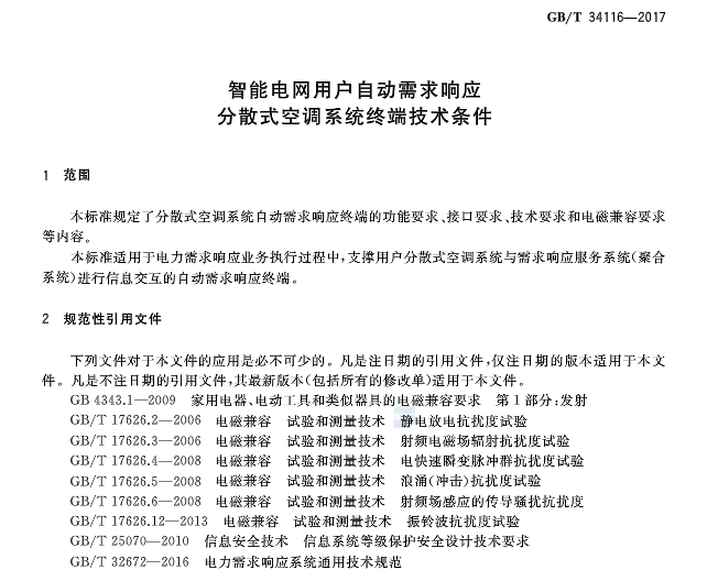 國家標(biāo)準(zhǔn)《智能電網(wǎng)用戶自動(dòng)需求響應(yīng) 分散式空調(diào)系統(tǒng)終端技術(shù)條件》將于今年2月起實(shí)施